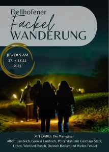 Freut euch auf eine kulinarische Fackelwanderung durch die Dellhofener Weinberge. Ihr habt die Möglichkeit, über 30 Weine zu probieren. An den verschiedenen Stationen gibt es kulinarische Highlights mit Suppe, Winzercanapés, einer deftigen Hauptspeise, Käse und Desserts. Sieben Winzer stehen Rede und Antwort rund um das Thema Wein. Los gehts um 16: 30 Uhr im Weingut Albert Lambrich, wo ihr auch unsere Weine verkosten könnt. Der Vorverkauf hat bereits begonnen. Meldet euch gerne bei uns, wir besorgen dann die Karten.
